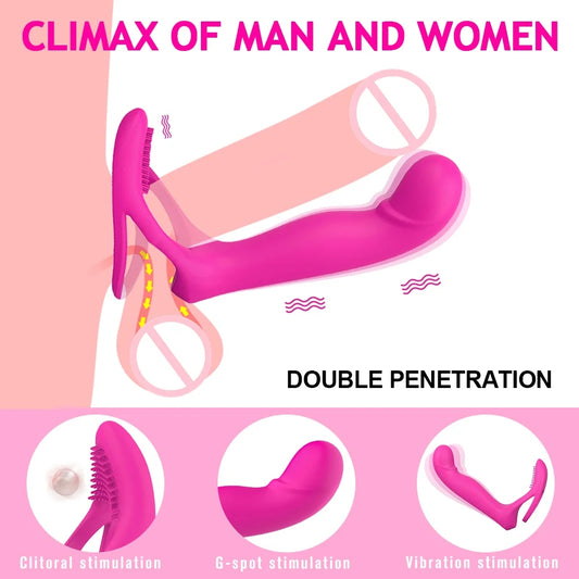 Remote Control Vibrating Strap on with Penis Rings for Couples