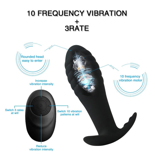 10 Modes Vibration Metal Anal Beads Butt Plug Prostate Massager Remote Control Vibrator