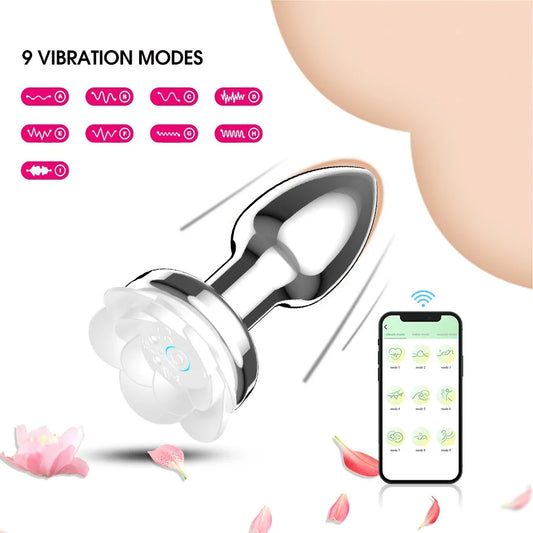 App & Wireless Remote Control 9 Frequency Rose Anal Plug