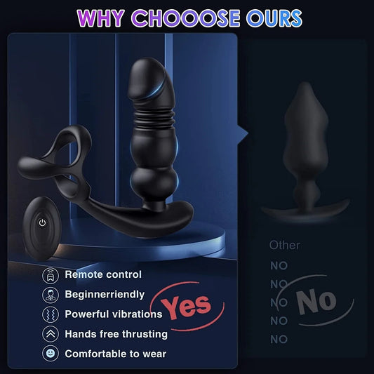 Wireless Remote Control Vibrating Prostate Massager With Penis Ring