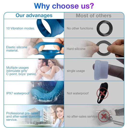 10 Frequency Vibrating Cock Ring Sex Toy For Couples