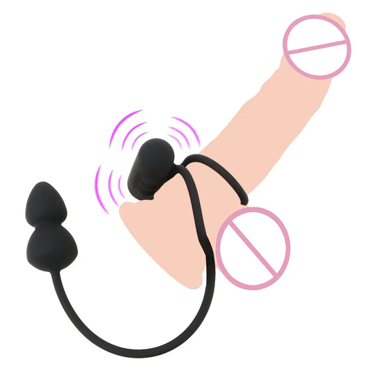 Vibrating Anal Beads Prostate Massager With Cock Ring Couple Sex Toy
