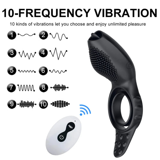 Remote Control Delay Ejaculation Vibrating Cock Ring with Licking Tongue
