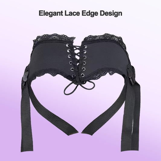 Elegant Lace Ruffle Adjustable Plus Size Strap On Dildo Harness with 3 Different Sized O-Rings