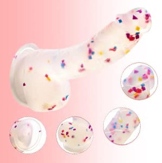 7.6 Inch Colorful Liquid Realistic Dildos, Medical Silicone, with Powerful Suction for Women/Men/Gay