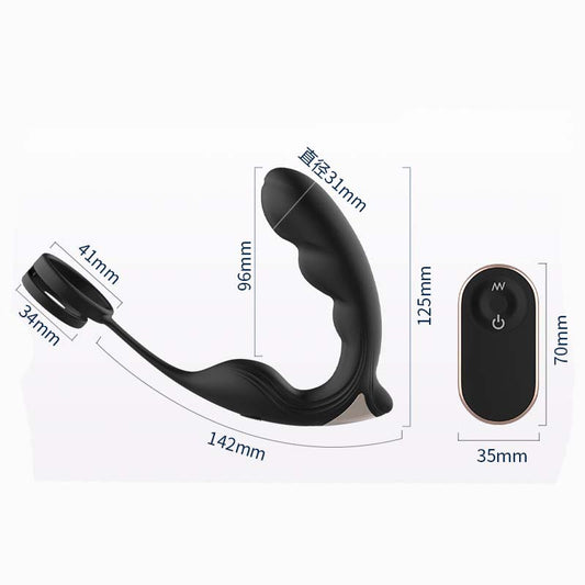 Remote Control 10 Vibration Prostate Stimulator Anal Vibrator with Cock-Ring