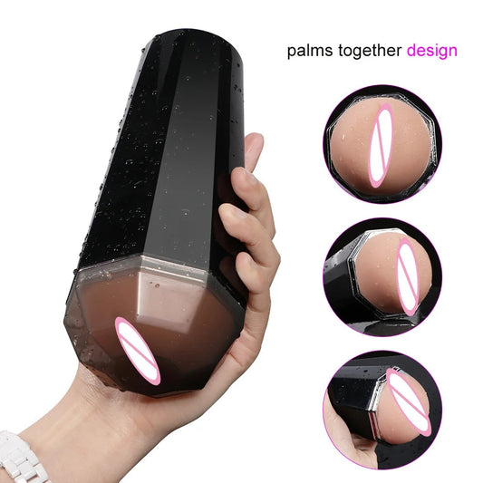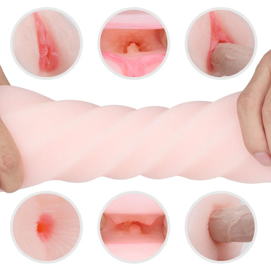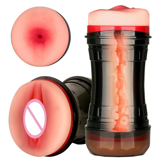 Male Masturbation Cup Dual Channel Silicone Realistic Vagina Adult Penis Pussy Masturbator For Men