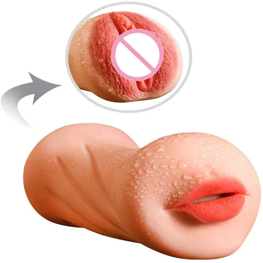Male Masturbation Cup Dual Channel Silicone Realistic Vagina Adult Penis Pussy Masturbator For Men