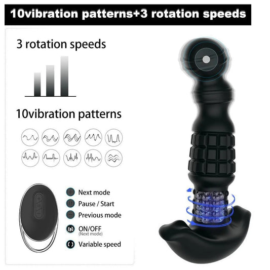 10 Frequency Vibration 3 Mode Rotation Remote Control Grenade Prostate Massager