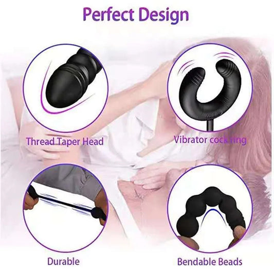 Vibrating Anal Beads Prostate Massager With Cock Ring Couple Sex Toy
