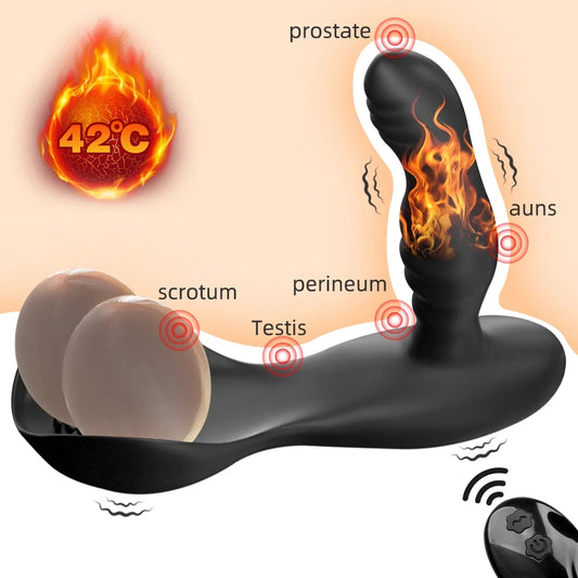 Prostate Massage Vibrator Remote Control Anal Toy with Rotating Beads