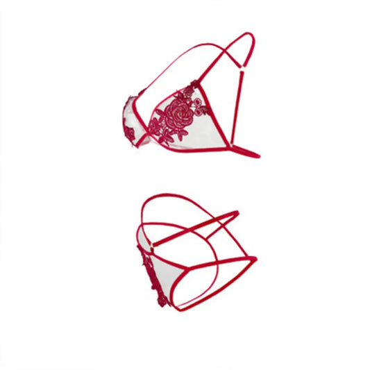 Women Sexy Rose Bra T-Shaped Open-End Underwear 3 Point Suit