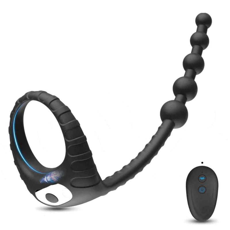 10 Frequency Vibration Cock Ring With Bead Pulling Prostate Massager