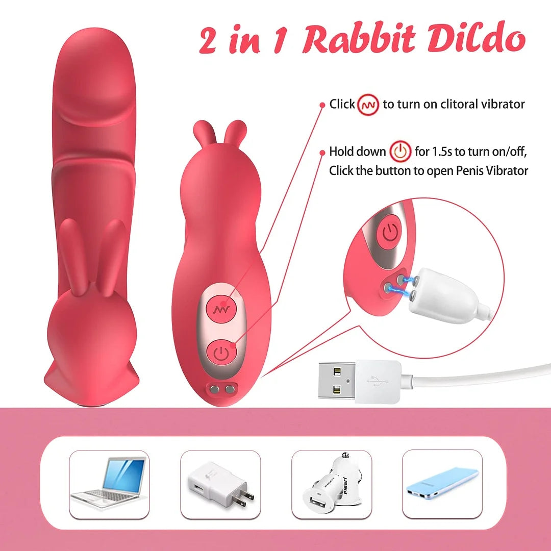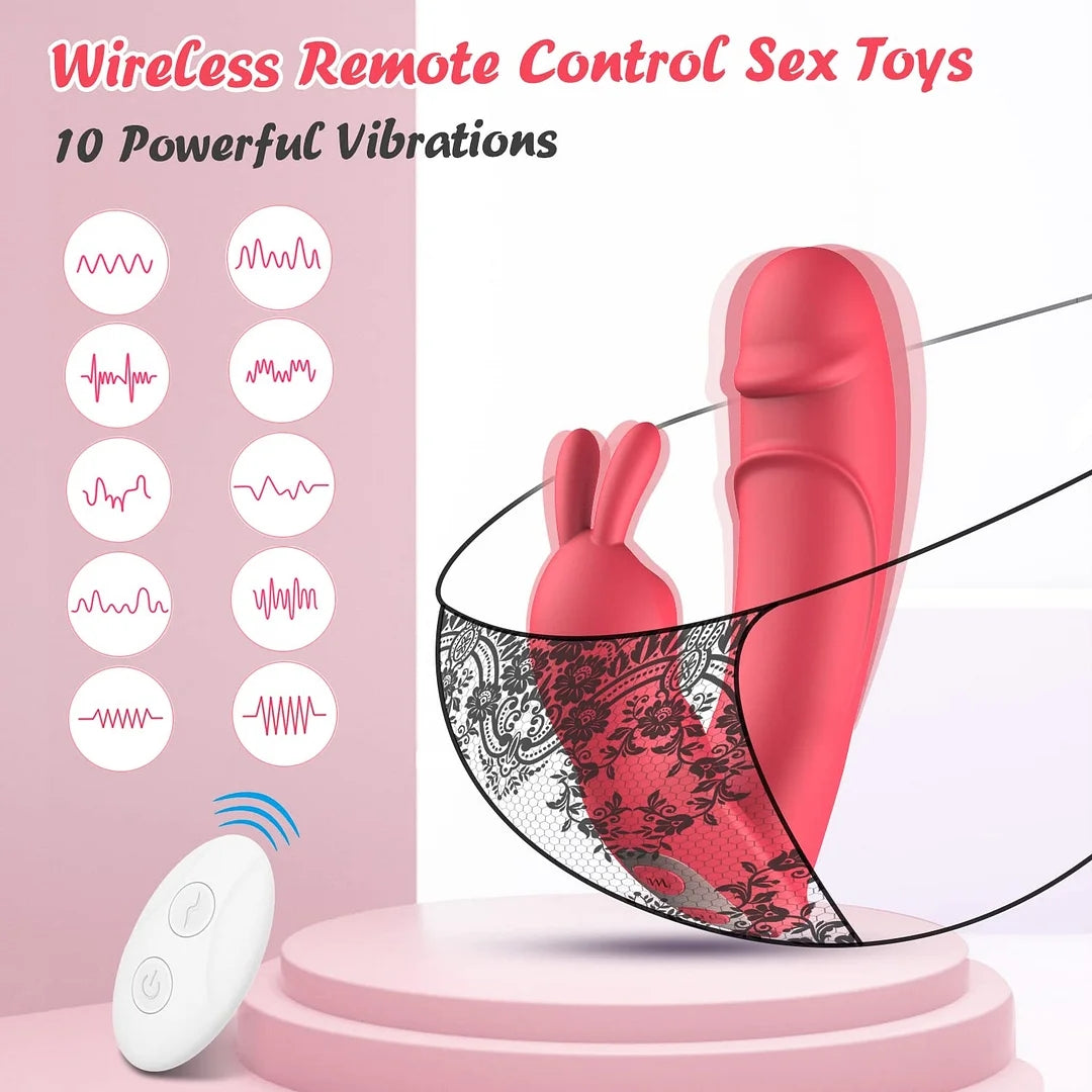 2-in-1 Rabbit Ear Clit Stimulator Wearable Panty Vibrator