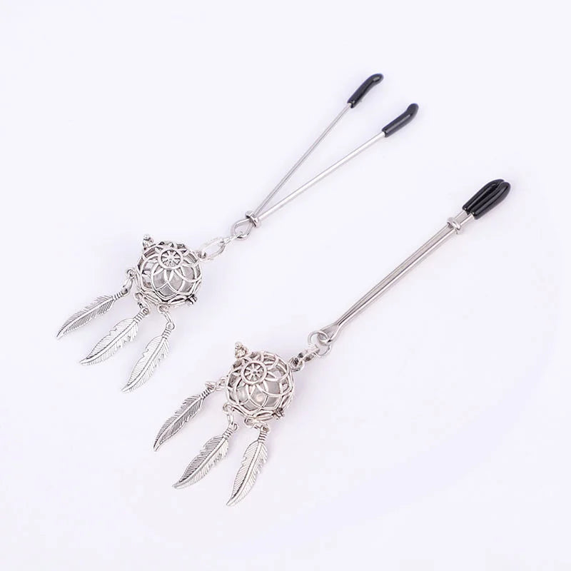 2Pcs Metal Feather Lantern Glow in the Dark Nipple Clamps