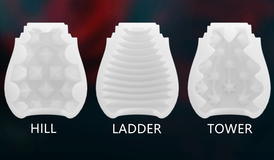 3 types of male rose sex toys with unique internal structures: Hill, Ladder, and Tower