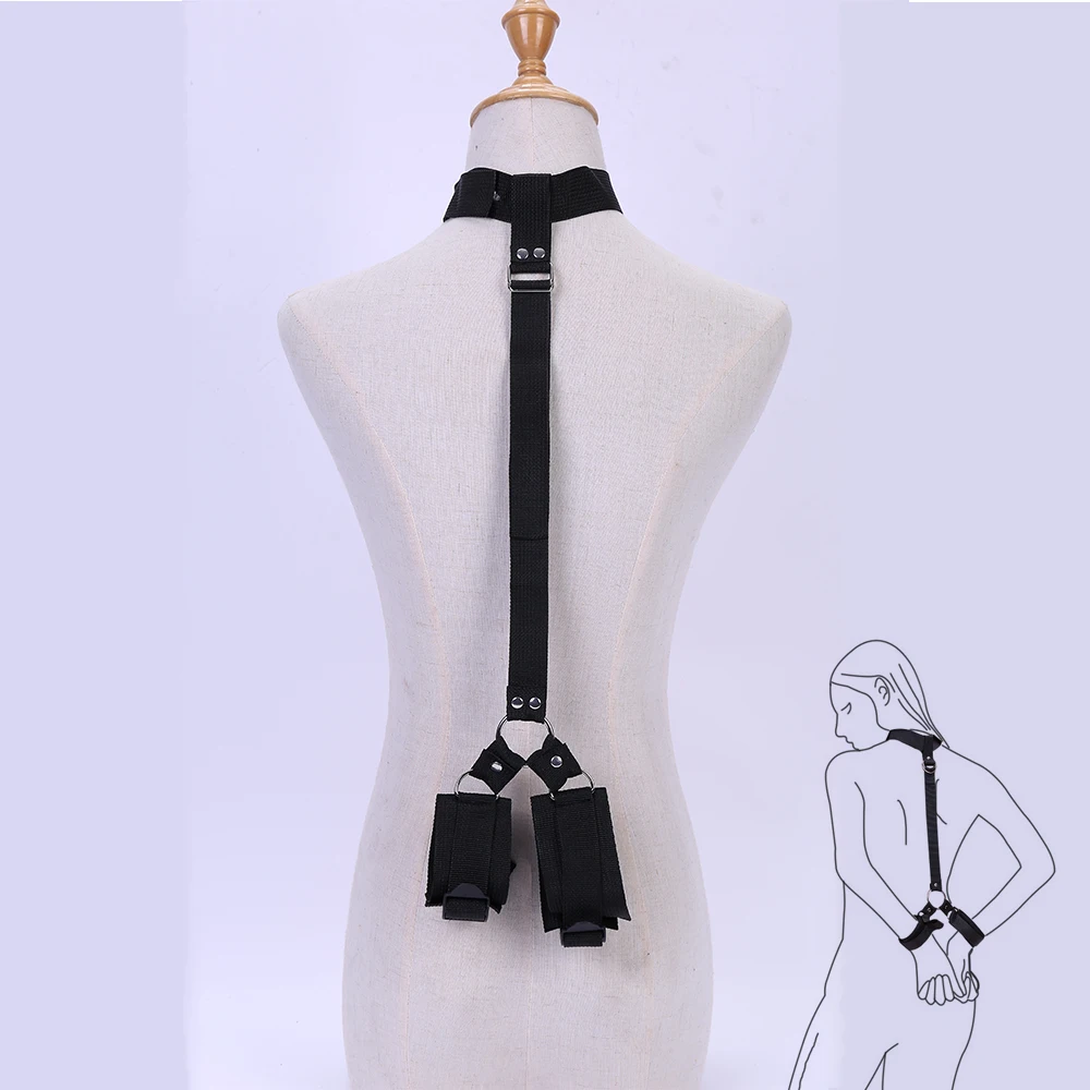 Neck to Wrist Restraints Kit Sexy Women BDSM Fetish Behind Back Handcuffs