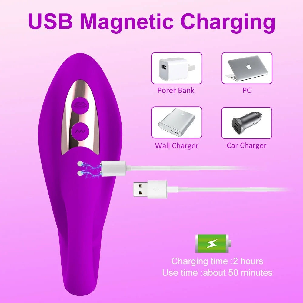 Rose Double Arousal Handheld Clit G-spot Vibrator
